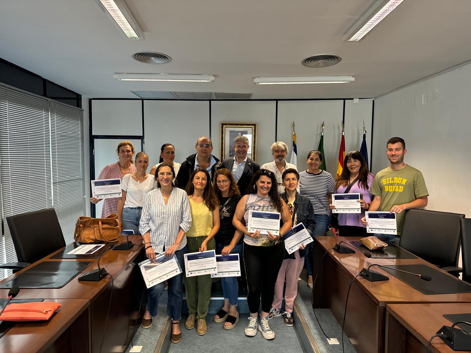 El curso de Promoción Turística y Atención al Visitante ha concluido con éxito. A la ceremonia de entrega de diplomas acudió el alcalde Ramón Peña acompañado de la concejala de Turismo Maria Antonia Romero donde aplaudieron y reconocieron el esfuerzo y compromiso de los participantes, así como el impacto positivo que esta formación puede tener en sus vidas y en el desarrollo económico y social de la comunidad.