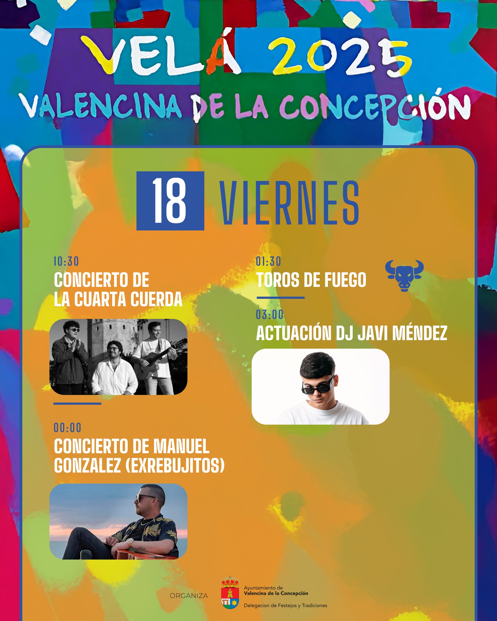 La Velá de este año ofrece una programación variada que combina actuaciones musicales, actividades infantiles, atracciones y espectáculos tradicionales como los toros de fuego.