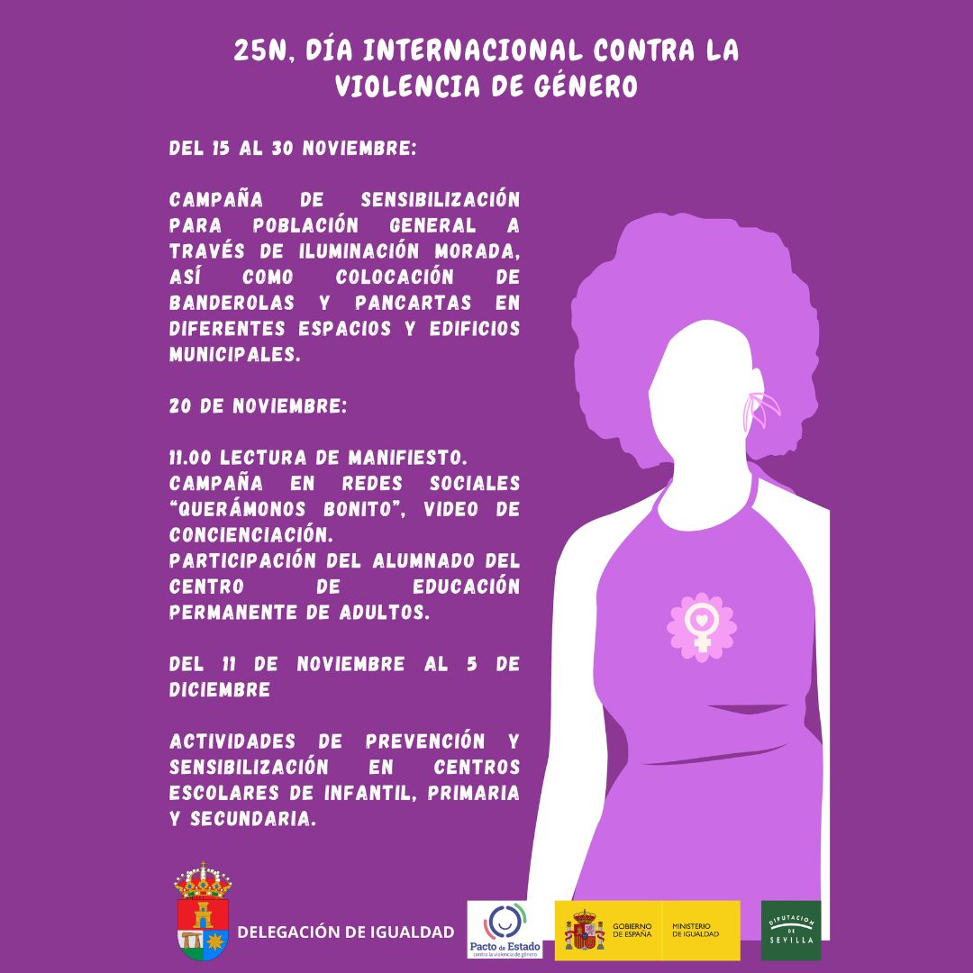 El Ayuntamiento de Valencina de la Concepción, a través de su Delegación de Igualdad, reafirma su compromiso con la lucha contra la violencia hacia las mujeres. Con motivo del 25 de noviembre, Día Internacional Contra la Violencia Hacia Las Mujeres, se han organizado una serie de actividades dirigidas a toda la ciudadanía, con especial atención a la población escolar. Estas acciones tienen como objetivo principal sensibilizar, educar y promover la igualdad, fomentando una convivencia basada en el respeto y la no violencia. A continuación, se presenta la Memoria de Actos Conmemorativos que tendrán lugar durante el mes de noviembre.