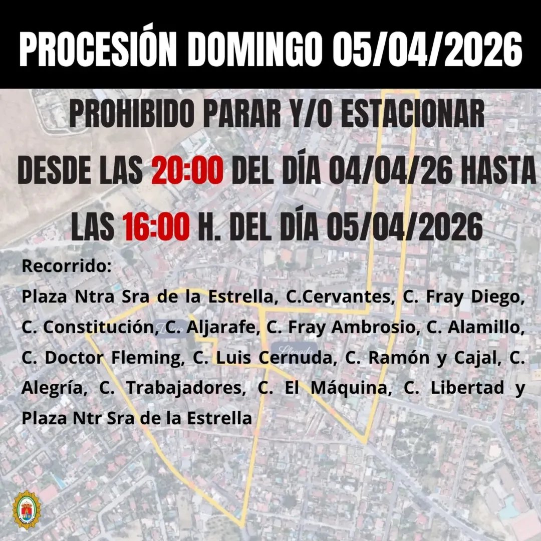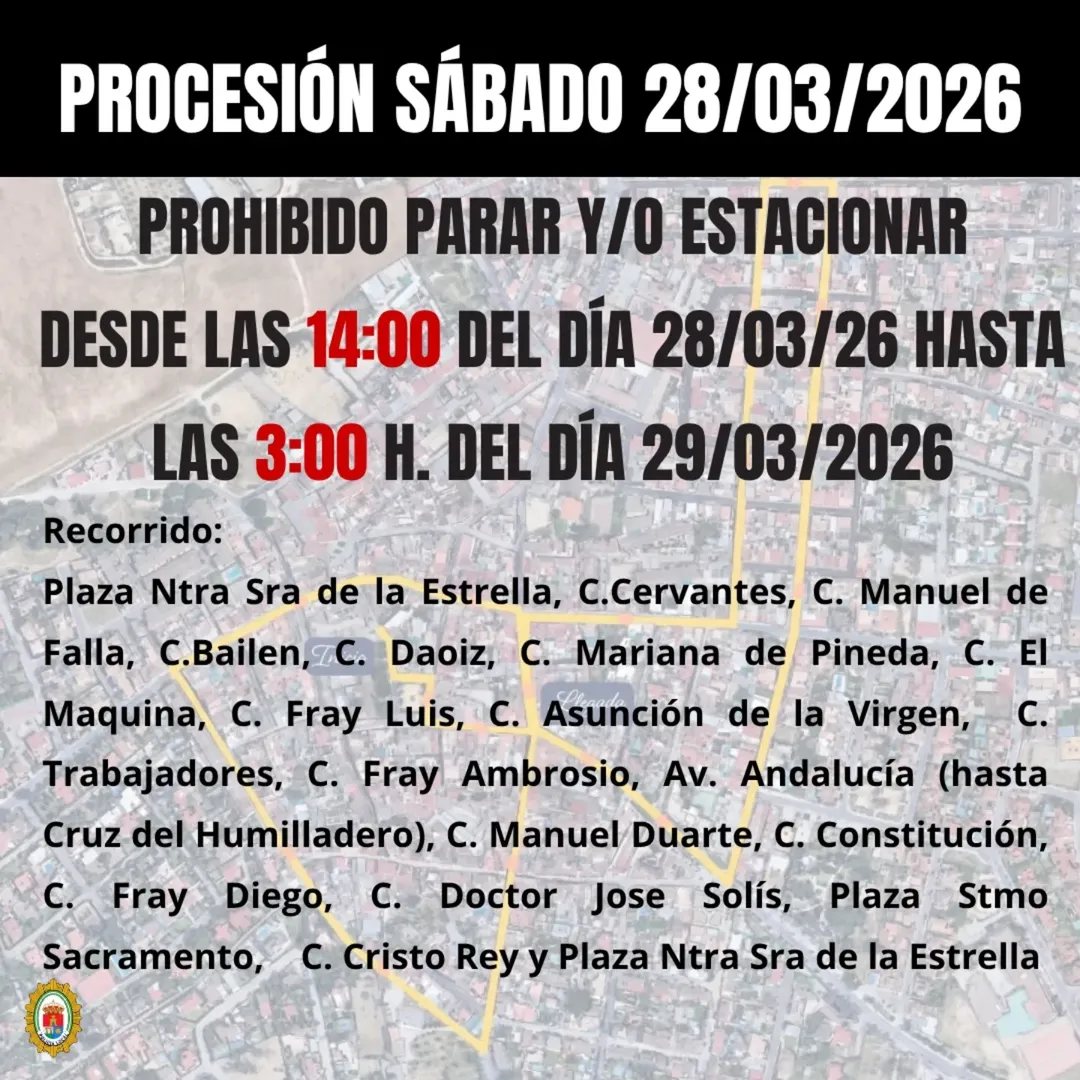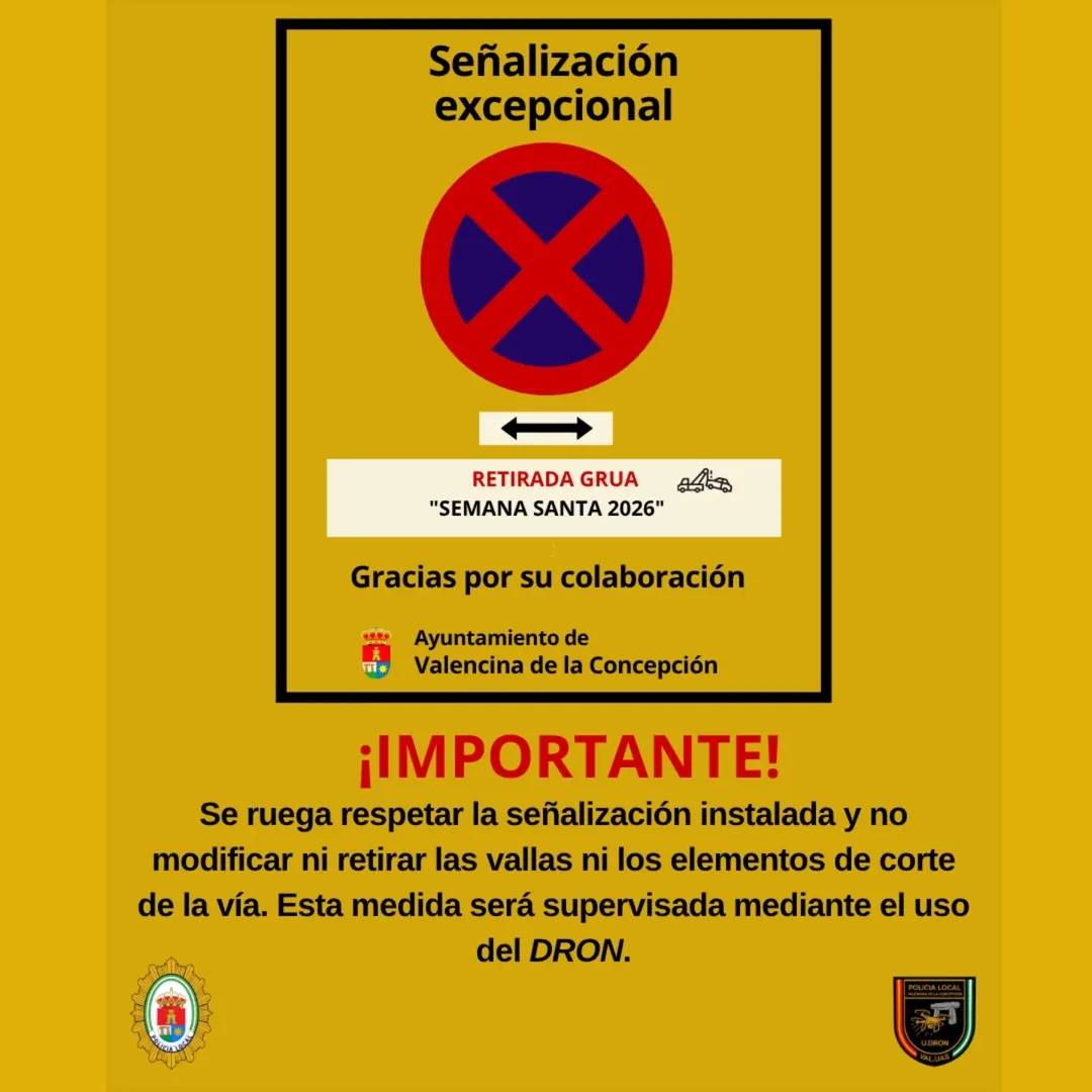 Desde el Ayuntamiento de Valencina de la Concepción se ruega a todos los vecinos y visitantes que respeten la señalización establecida, así como las indicaciones de los agentes de policia local durante el recorrido de las procesiones.