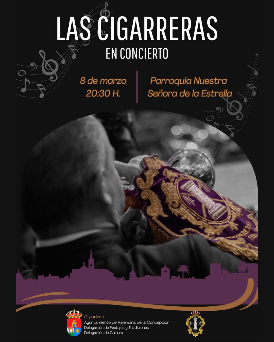 La Banda de Nuestra Señora de la Victoria, conocida popularmente como "Las Cigarreras", ofrecerá un emotivo concierto dentro del tiempo de Cuaresma. Una oportunidad única para disfrutar de la música procesional en un entorno especial.