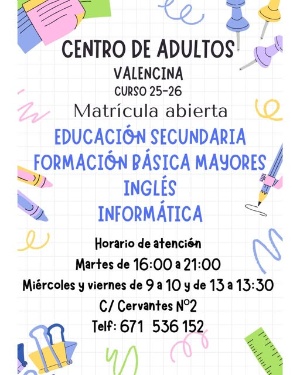 La Escuela de Adultos de Valencina de la Concepción ha abierto el plazo de matrícula para acceder a su programa de formación 2017-18.