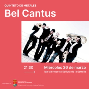 El Salón de Actos de la Casa de la Cultura acogerá el viernes 23 de febrero, a partir de las 20:30 horas, la representación de la compañía de Laura Tabanera, una de las seis citas musicales previstas por el Ayuntamiento en este ciclo hasta la próxima primavera. Las entradas pueden adquirirse en la Casa de la Cultura: 955 72 02 11 culturavalencina@gmail.com