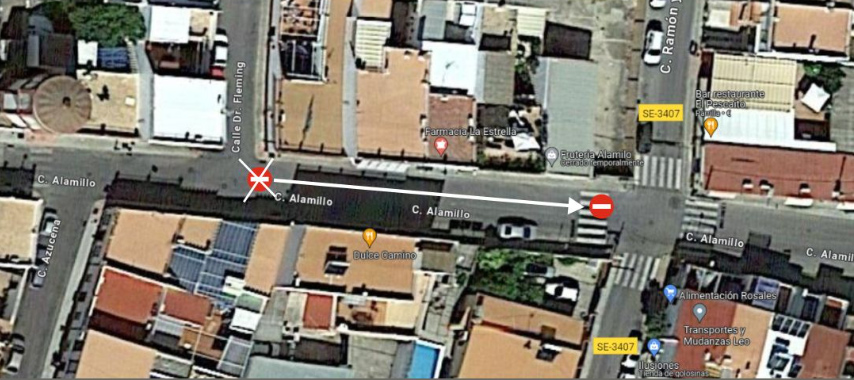 A partir de ahora, el tramo de la calle Alamillo, ubicado entre las calles Dr. Fleming y Ramón y Cajal, pasará de doble sentido a un solo sentido de circulación.