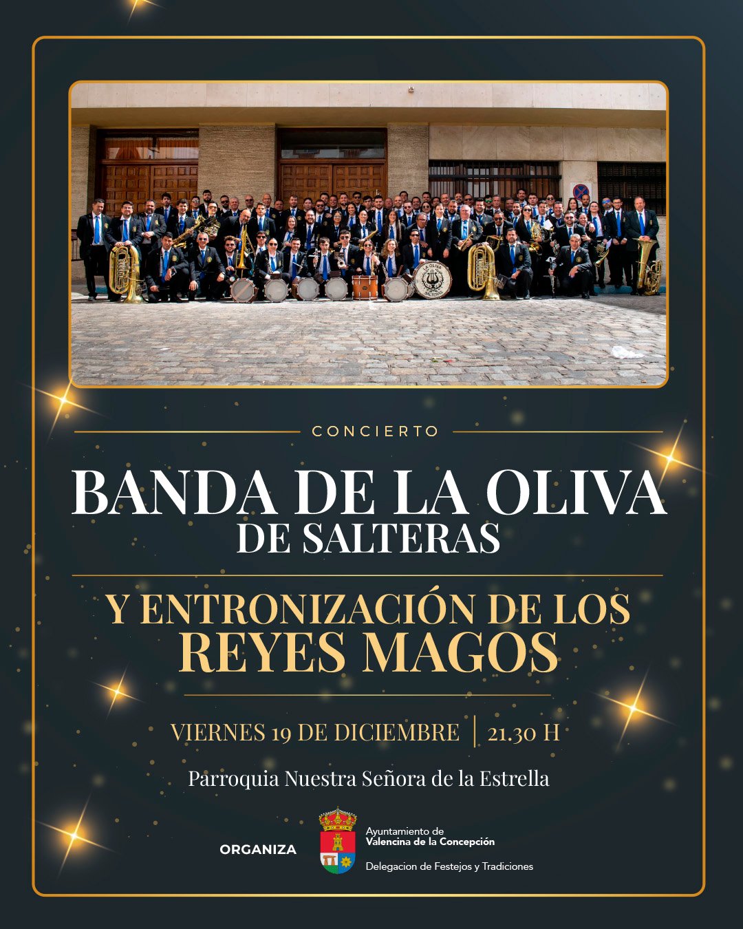 La Navidad suena en Valencina de la Concepción con una de sus citas más emotivas. El próximo 19 de diciembre, la Banda de la Oliva de Salteras llenará de música y sentimiento la Parroquia Nuestra Señora de la Estrella, en un concierto muy especial en el que se llevará a cabo la entronización de Sus Majestades los Reyes Magos.