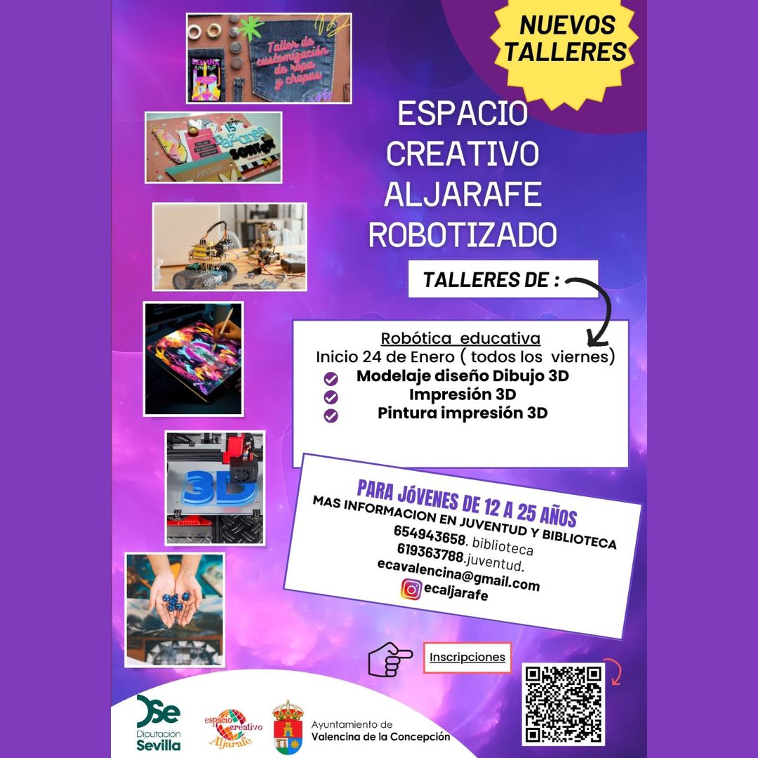 ¿Te apasiona la impresión 3D? Únete a esta emocionante actividad dentro del programa Espacios Creativos del Aljarafe, donde podrás dar vida a tus ideas: desde el diseño en 3D hasta la impresión y el pintado de tus propias figuras.
