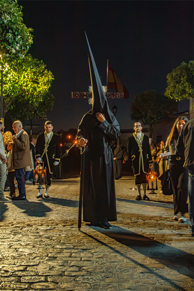 Este 2025, la Hermandad Sacramental y de la Vera +Cruz nos ha vuelto a trasladar a siglos pasados, con una estación de penitencia cargada de autenticidad, belleza y emoción. A ello se sumó este año la presencia del saetero Manolo Cuevas, que con su voz desgarrada puso el vello de punta a todos los que tuvimos el privilegio de escucharle.