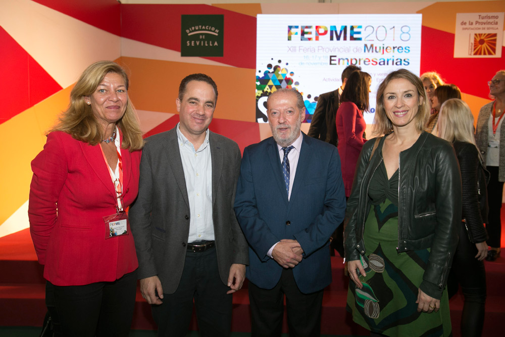 El alcalde de Valencina de la Concepción, Antonio Manuel Suárez, estuvo presente en la Feria Provincial de Mujeres Empresarias (FEMPE) junto a la delegada de Desarrollo Local, Sonia Arellano. Durante el evento acompañaron a la empresaria valencinera Judith Rodríguez, fundadora y directora de la empresa textil Magora Sevilla.