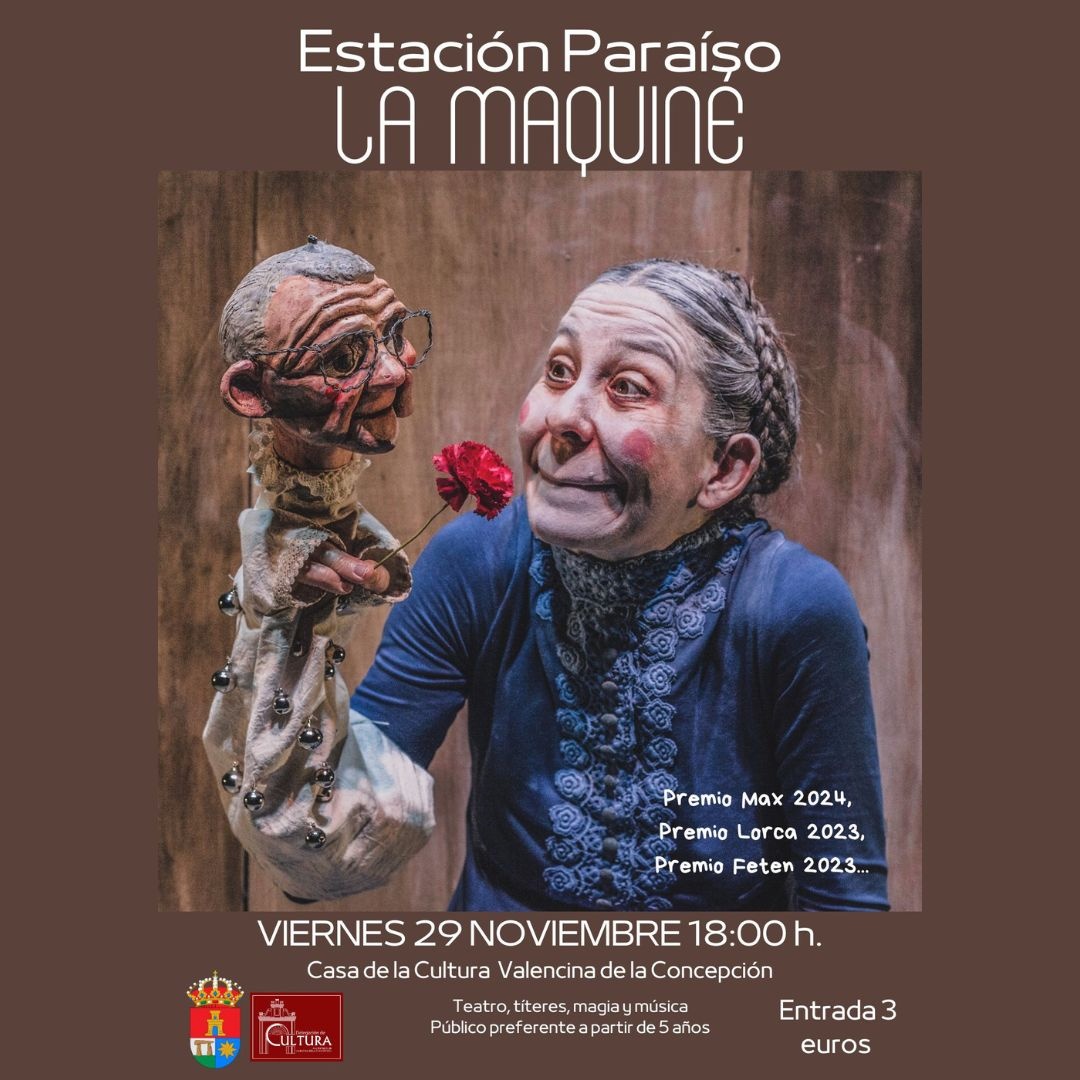 Premiada como la mejor obra para público familiar e infantil de España este año, el próximo viernes 29 de noviembre a las 18:00 h. en la Casa de la Cultura de Valencina, podremos disfrutar de la reconocida con un Max de Teatro, “Estación Paraíso” de La Maquiné.