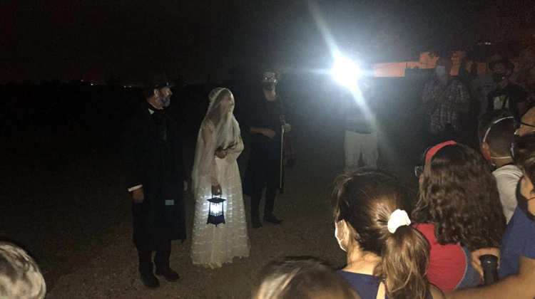 El Ayuntamiento de Valencina, a través de la delegación municipal de Cultura, organizó el sábado 8 de agosto la segunda jornada del programa "Noches de Miedo”. Celebrada en el Parque de la Gallega, la obra “Cementerio" fue puesta en escena por la Compañía In-Pacto, alcanzando una excelente respuesta por parte de los valencineros/as, con aforo completo.