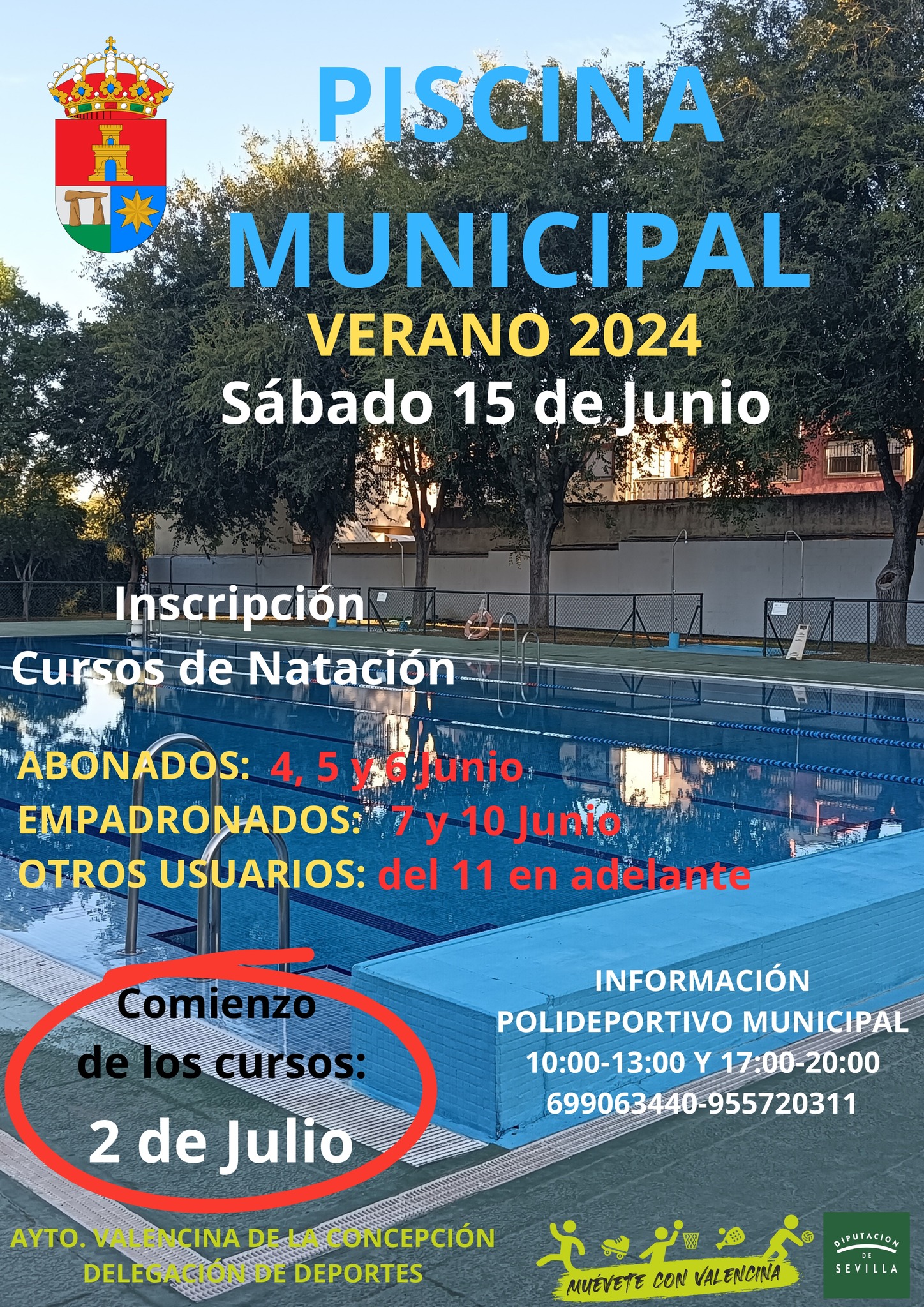 El Ayuntamiento de Valencina de la Concepción anuncia la esperada apertura de la Piscina Municipal para la temporada de verano 2024. La piscina abrirá sus puertas el sábado 15 de junio, ofreciendo a los vecinos y visitantes un lugar ideal para disfrutar y refrescarse durante los meses más cálidos del año.