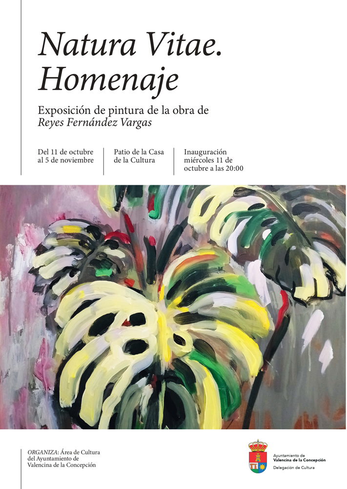 Con un total de veinte obras que hacen un recorrido a través de su trayectoria artística, Reyes Fernández Vargas, nacida en Alanís, desarrolla gran parte de su obra vinculada a la Casa de la Cultura de Valencina de la Concepción donde fue profesora del taller de pintura de Adultos. La exposición supone un sentido homenaje que pone en valor no sólo su capacidad plástica, sino también la pasión y las enseñanzas que ha ido dejando a lo largo de estos años.