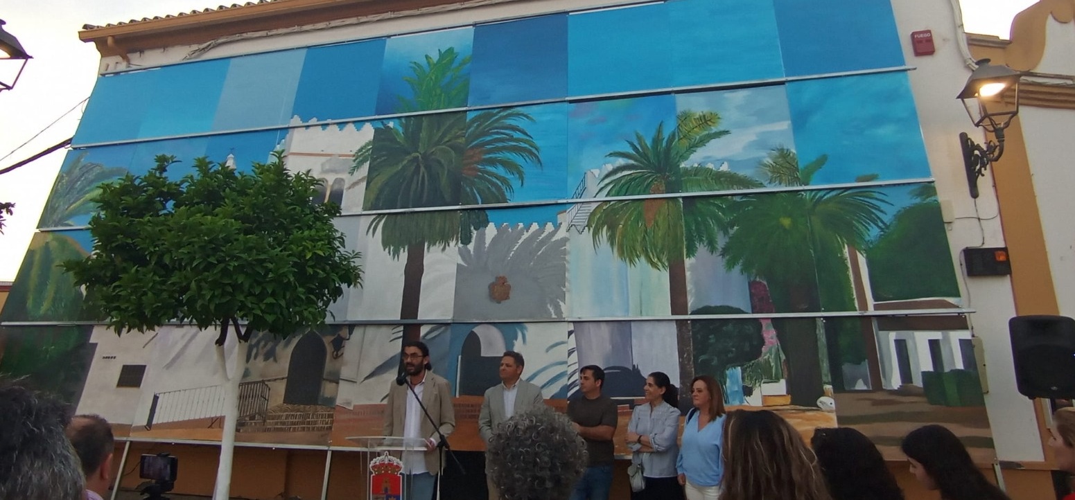 El evento contó con la presencia de David Ruíz, director de la Casa de la Cultura de Valencina de la Concepción, acompañado por el concejal José María Sánchez, las concejalas María Antonia Romero y Maribel Gordillo, y el director artístico de la obra, Jonatan Pizarro, quienes compartieron con vecinos y artistas una tarde llena de arte y pintura.