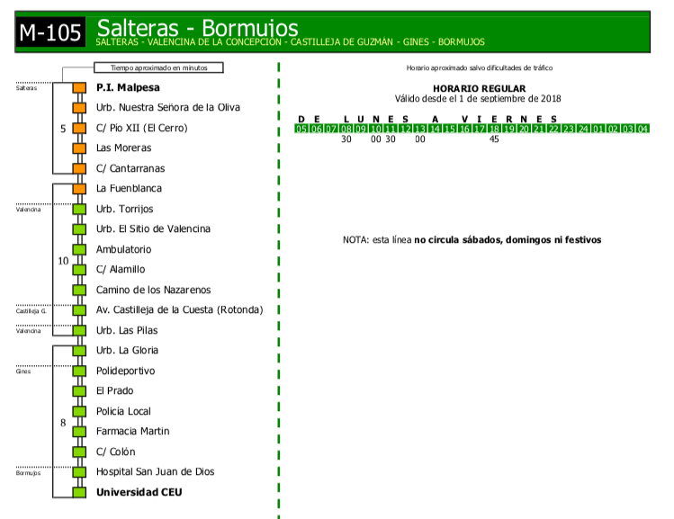 Valencina es el municipio con mayor número de paradas en la Línea M-105, como puede verse en el gráfico adjunto a la noticia.