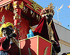Los Reyes Magos de Oriente recorren Valencina el jueves 5 de enero desde las 16.30 horas acompañados de un cortejo que este año incorpora la carroza “ Los Troglodinos Jurásicos ” hasta seis en las que participan más de sesenta niños, niñas y adultos, además de la charanga “Los Pingüinos” y el grupo de Beduinos.
