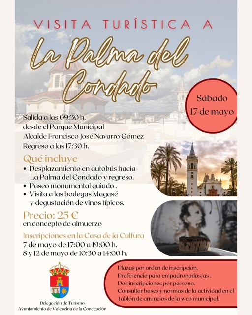 Desde la Delegación de Turismo seguimos apostando por ampliar la oferta de actividades para nuestras vecinas y vecinos.En esta ocasión, organizamos una salida cultural a La Palma del Condado, con el objetivo de fomentar la participación ciudadana y dar a conocer el patrimonio cercano.
