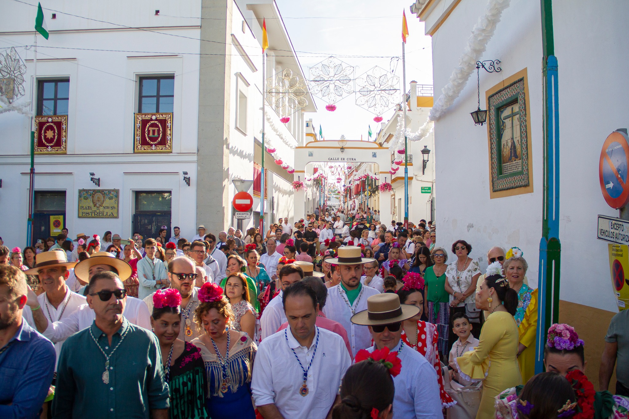 Una romería que discurre íntegramente por el casco urbano con un exorno floral espectacular en la que, miles de romeros han acompañado en peregrinación a la Virgen de la Estrella a la Hacienda Torrijos donde bueyes, carros, tractores, caballistas y cientos de romeros se han congregado para realizar el camino a la Hacienda.