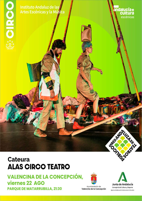 El viernes 22 de agosto, a las 21:30 h. en el Parque de Matarrubilla, podremos disfrutar de un espectáculo escénico a cargo de Alas Circo Teatro, en el marco de la Red Andaluza de Teatros Públicos.