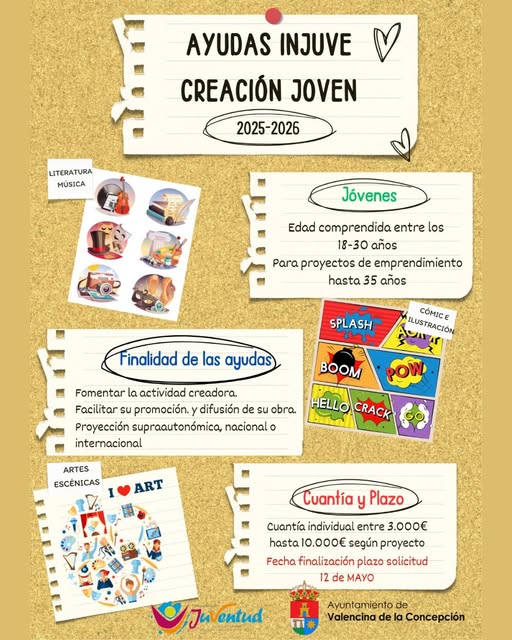 Ya están abiertas las Ayudas Injuve para la Creación Joven 2025-2026, dirigidas a jóvenes de hasta 30 años (¡hasta 35 si es emprendimiento!) que quieran desarrollar iniciativas en: