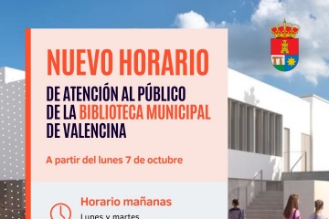 Nuevo horario de atención al público de la Biblioteca Municipal