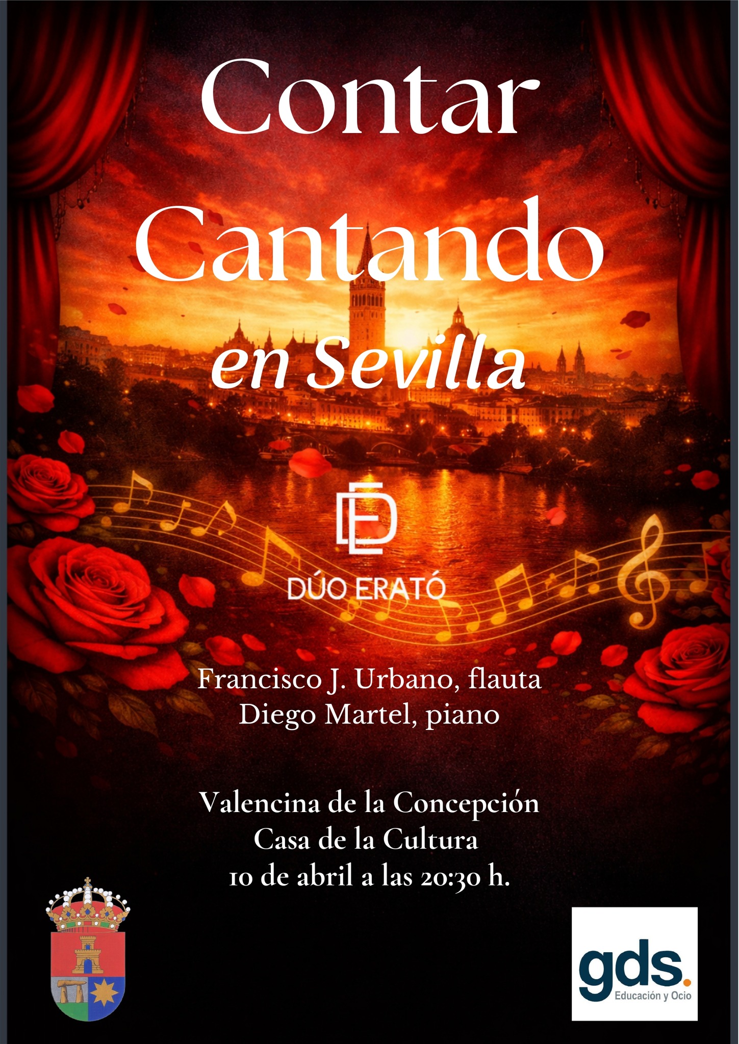 En esta ocasión, podremos disfrutar el 10 de abril a las 20:30h de Dúo Erató, un emocionante espectáculo de flauta y piano que nos llevará en un viaje musical por la historia de Sevilla y su provincia.